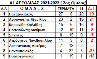 Α1 Αργολίδας 2021-2022 2ος Ομιλος 9η Αγωνιστική | ||||